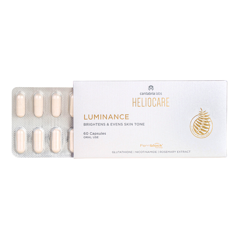 Thành phần: Polypodium leucotomos extract, L-glutathione; Maltodextrin, Coating agent (Hydroxypropylmethylcellulose (E-464)), Rosmarinus officinalis extract (Rosemary extract), Niacin (Nicotinamide), Anti-caking agent (Magnesium salts of fatty acrids (E 470b)), Opacifying agent (Calcium carbonate (E-170), Zeinc oxide, Maltodextrin and acacia gum (E-414)).