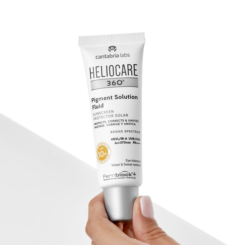 Kem chống nắng HELIOCARE 360º Pigment Solution Fluid SPF 50+ mang đến sự bảo vệ toàn diện với chỉ số SPF 50 và PA++++, giúp bảo vệ da khỏi tia UV, ánh sáng khả kiến và tia hồng ngoại. Sản phẩm còn có khả năng chống ô nhiễm và ánh sáng xanh, giúp ngăn ngừa tác động xấu từ môi trường. Sản phẩm không chỉ bảo vệ mà còn hỗ trợ sửa chữa tổn thương do ánh nắng, chống oxy hóa và giảm thiểu sự hình thành đốm nâu, mang lại làn da đều màu hơn. Với kết cấu mịn màng và mềm mại, sản phẩm chống nước và mồ hôi, đồng thời không gây kích ứng mắt, không bít tắc lỗ chân lông và không gây dị ứng. Đặc biệt, sản phẩm đã được kiểm nghiệm dưới sự giám sát của các chuyên gia da liễu và nhãn khoa, đảm bảo an toàn và hiệu quả cho người sử dụng.
